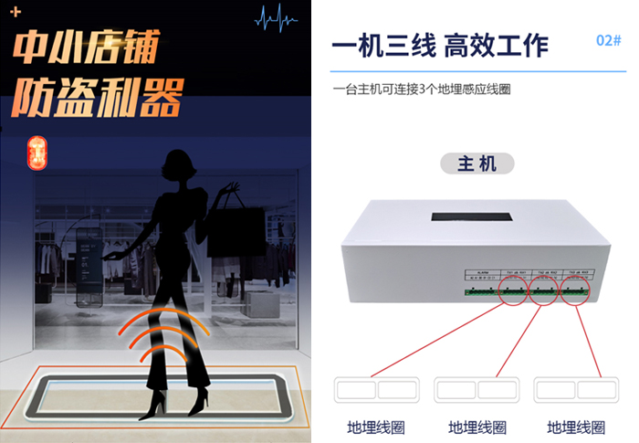 The buried invisible anti-theft system has invisible coils laid under the floor tiles, which do not occupy the space of the store. It not only has good product anti-theft effect, but also allows consumers to have a respected consumption experience. This product is generally used in places with valuable items such as chain clothing stores, luggage shoe stores, cosmetics stores, etc.