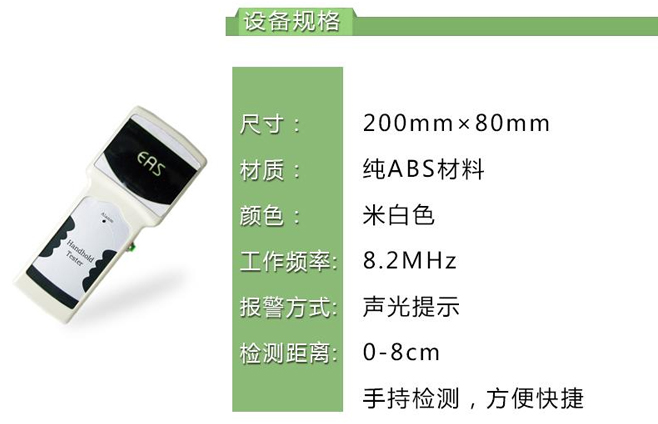 This EAS handheld detector features lightweight, easy to carry, and battery powered features for searching for undecoded anti-theft tags carried by customers, avoiding awkward situations of body searches and improving relationships with customers. Detection distance of 8cm. Used for EAS handheld detector detection on production lines, sampling inspection of export goods, security inspection of mall security gates, etc;