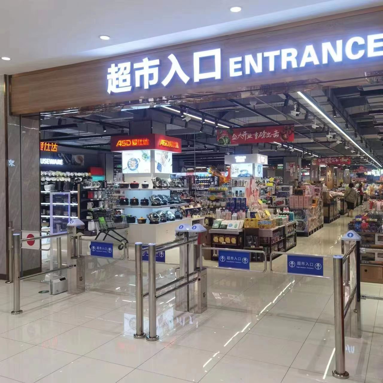 The induction method of the automatic induction door in the six pillar supermarket is photoelectric induction. The main box is made of 8K mirror stainless steel and has functions such as reverse alarm and passenger flow counting. It can also be equipped with automatic maintenance function when power is off, which can effectively control passenger flow and prevent panic in emergency situations.